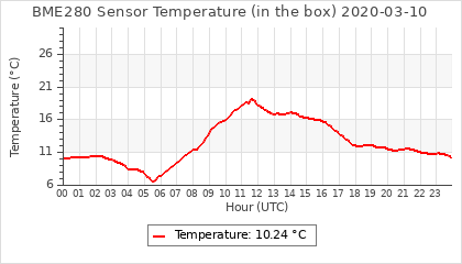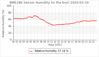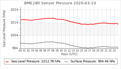 Experimental atmospheric pressure measurement with a simple sensor: BOSCH BME280The instrument is in the data collection box of the CR10X, the temperature and humidity do not reflect the real air conditions, because the box is in the sun and is not properly ventilated for these measurements.