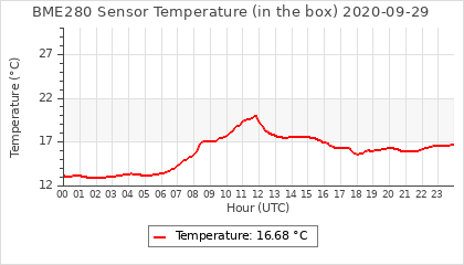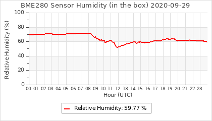 Experimental atmospheric pressure measurement with a simple sensor: BOSCH BME280The instrument is in the data collection box of the CR10X, the temperature and humidity do not reflect the real air conditions, because the box is in the sun and is not properly ventilated for these measurements.