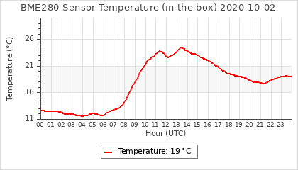 Experimental atmospheric pressure measurement with a simple sensor: BOSCH BME280The instrument is in the data collection box of the CR10X, the temperature and humidity do not reflect the real air conditions, because the box is in the sun and is not properly ventilated for these measurements.