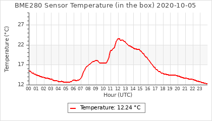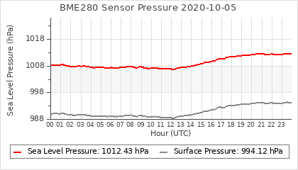 Experimental atmospheric pressure measurement with a simple sensor: BOSCH BME280The instrument is in the data collection box of the CR10X, the temperature and humidity do not reflect the real air conditions, because the box is in the sun and is not properly ventilated for these measurements.