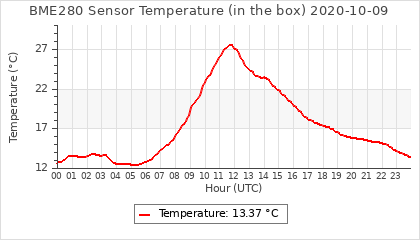Experimental atmospheric pressure measurement with a simple sensor: BOSCH BME280The instrument is in the data collection box of the CR10X, the temperature and humidity do not reflect the real air conditions, because the box is in the sun and is not properly ventilated for these measurements.