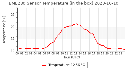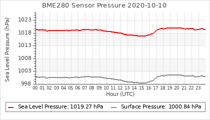 Experimental atmospheric pressure measurement with a simple sensor: BOSCH BME280The instrument is in the data collection box of the CR10X, the temperature and humidity do not reflect the real air conditions, because the box is in the sun and is not properly ventilated for these measurements.