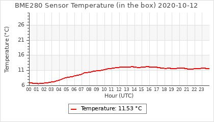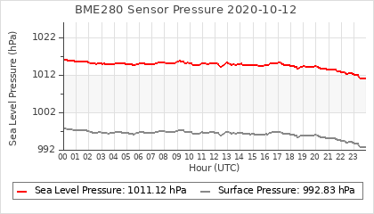 Experimental atmospheric pressure measurement with a simple sensor: BOSCH BME280The instrument is in the data collection box of the CR10X, the temperature and humidity do not reflect the real air conditions, because the box is in the sun and is not properly ventilated for these measurements.