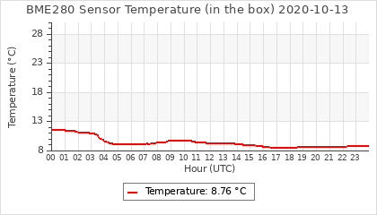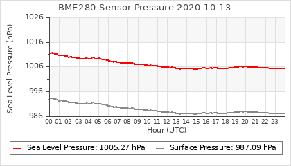 Experimental atmospheric pressure measurement with a simple sensor: BOSCH BME280The instrument is in the data collection box of the CR10X, the temperature and humidity do not reflect the real air conditions, because the box is in the sun and is not properly ventilated for these measurements.