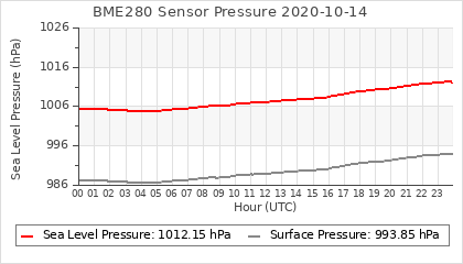 Experimental atmospheric pressure measurement with a simple sensor: BOSCH BME280The instrument is in the data collection box of the CR10X, the temperature and humidity do not reflect the real air conditions, because the box is in the sun and is not properly ventilated for these measurements.