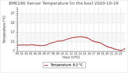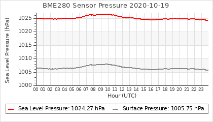 Experimental atmospheric pressure measurement with a simple sensor: BOSCH BME280The instrument is in the data collection box of the CR10X, the temperature and humidity do not reflect the real air conditions, because the box is in the sun and is not properly ventilated for these measurements.