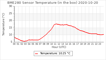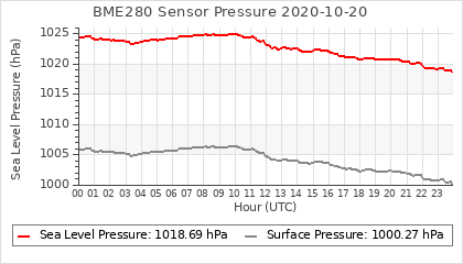 Experimental atmospheric pressure measurement with a simple sensor: BOSCH BME280The instrument is in the data collection box of the CR10X, the temperature and humidity do not reflect the real air conditions, because the box is in the sun and is not properly ventilated for these measurements.
