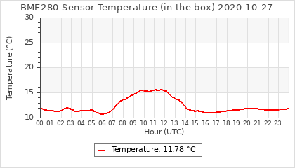 Experimental atmospheric pressure measurement with a simple sensor: BOSCH BME280The instrument is in the data collection box of the CR10X, the temperature and humidity do not reflect the real air conditions, because the box is in the sun and is not properly ventilated for these measurements.
