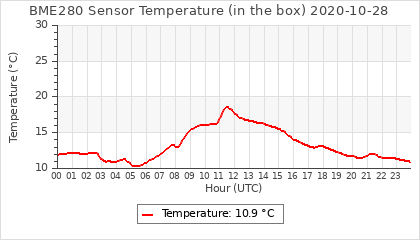 Experimental atmospheric pressure measurement with a simple sensor: BOSCH BME280The instrument is in the data collection box of the CR10X, the temperature and humidity do not reflect the real air conditions, because the box is in the sun and is not properly ventilated for these measurements.
