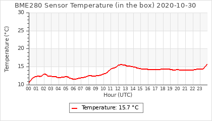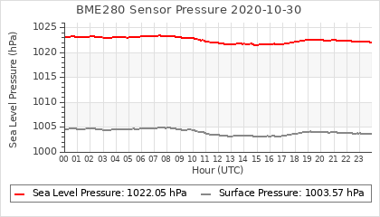 Experimental atmospheric pressure measurement with a simple sensor: BOSCH BME280The instrument is in the data collection box of the CR10X, the temperature and humidity do not reflect the real air conditions, because the box is in the sun and is not properly ventilated for these measurements.