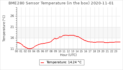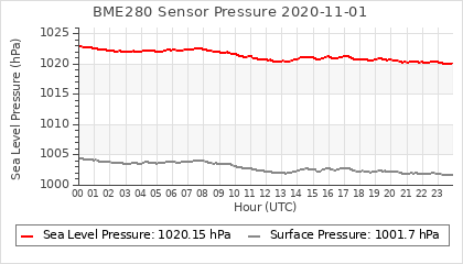 Experimental atmospheric pressure measurement with a simple sensor: BOSCH BME280The instrument is in the data collection box of the CR10X, the temperature and humidity do not reflect the real air conditions, because the box is in the sun and is not properly ventilated for these measurements.