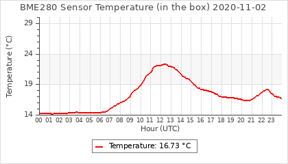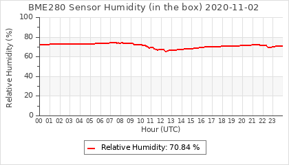 Experimental atmospheric pressure measurement with a simple sensor: BOSCH BME280The instrument is in the data collection box of the CR10X, the temperature and humidity do not reflect the real air conditions, because the box is in the sun and is not properly ventilated for these measurements.
