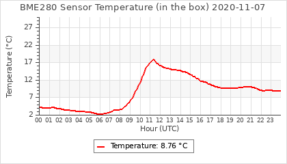Experimental atmospheric pressure measurement with a simple sensor: BOSCH BME280The instrument is in the data collection box of the CR10X, the temperature and humidity do not reflect the real air conditions, because the box is in the sun and is not properly ventilated for these measurements.