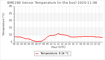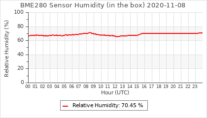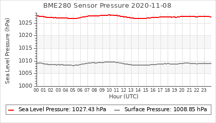 Experimental atmospheric pressure measurement with a simple sensor: BOSCH BME280The instrument is in the data collection box of the CR10X, the temperature and humidity do not reflect the real air conditions, because the box is in the sun and is not properly ventilated for these measurements.