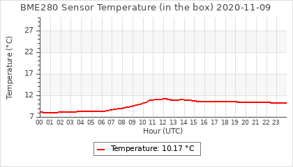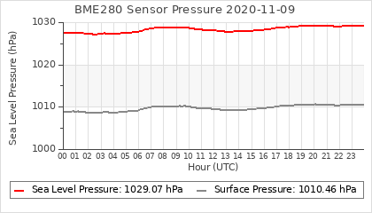 Experimental atmospheric pressure measurement with a simple sensor: BOSCH BME280The instrument is in the data collection box of the CR10X, the temperature and humidity do not reflect the real air conditions, because the box is in the sun and is not properly ventilated for these measurements.