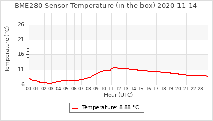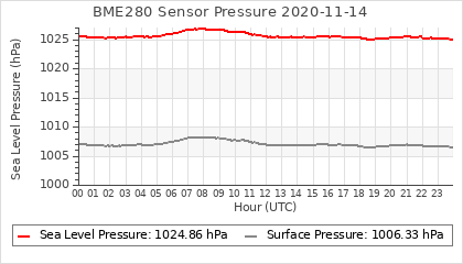 Experimental atmospheric pressure measurement with a simple sensor: BOSCH BME280The instrument is in the data collection box of the CR10X, the temperature and humidity do not reflect the real air conditions, because the box is in the sun and is not properly ventilated for these measurements.