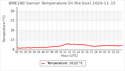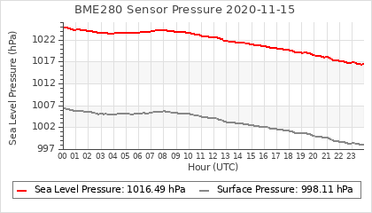 Experimental atmospheric pressure measurement with a simple sensor: BOSCH BME280The instrument is in the data collection box of the CR10X, the temperature and humidity do not reflect the real air conditions, because the box is in the sun and is not properly ventilated for these measurements.