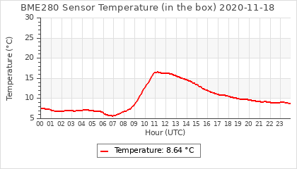 Experimental atmospheric pressure measurement with a simple sensor: BOSCH BME280The instrument is in the data collection box of the CR10X, the temperature and humidity do not reflect the real air conditions, because the box is in the sun and is not properly ventilated for these measurements.