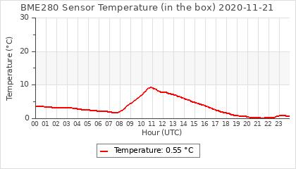 Experimental atmospheric pressure measurement with a simple sensor: BOSCH BME280The instrument is in the data collection box of the CR10X, the temperature and humidity do not reflect the real air conditions, because the box is in the sun and is not properly ventilated for these measurements.