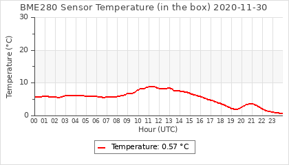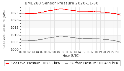 Experimental atmospheric pressure measurement with a simple sensor: BOSCH BME280The instrument is in the data collection box of the CR10X, the temperature and humidity do not reflect the real air conditions, because the box is in the sun and is not properly ventilated for these measurements.