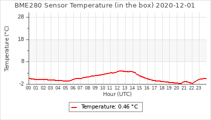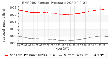 Experimental atmospheric pressure measurement with a simple sensor: BOSCH BME280The instrument is in the data collection box of the CR10X, the temperature and humidity do not reflect the real air conditions, because the box is in the sun and is not properly ventilated for these measurements.