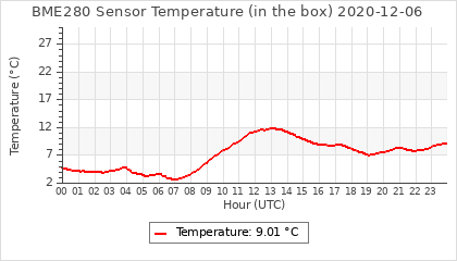 Experimental atmospheric pressure measurement with a simple sensor: BOSCH BME280The instrument is in the data collection box of the CR10X, the temperature and humidity do not reflect the real air conditions, because the box is in the sun and is not properly ventilated for these measurements.