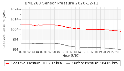 Experimental atmospheric pressure measurement with a simple sensor: BOSCH BME280The instrument is in the data collection box of the CR10X, the temperature and humidity do not reflect the real air conditions, because the box is in the sun and is not properly ventilated for these measurements.