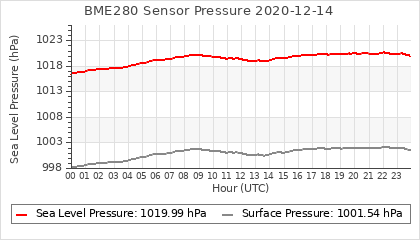 Experimental atmospheric pressure measurement with a simple sensor: BOSCH BME280The instrument is in the data collection box of the CR10X, the temperature and humidity do not reflect the real air conditions, because the box is in the sun and is not properly ventilated for these measurements.