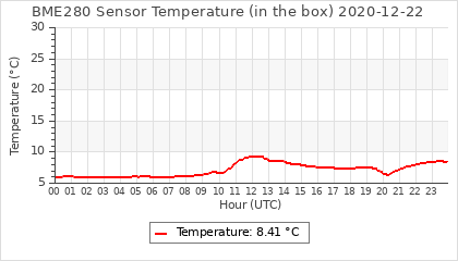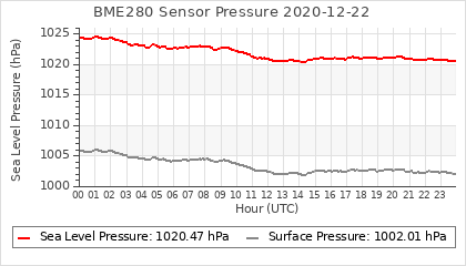 Experimental atmospheric pressure measurement with a simple sensor: BOSCH BME280The instrument is in the data collection box of the CR10X, the temperature and humidity do not reflect the real air conditions, because the box is in the sun and is not properly ventilated for these measurements.