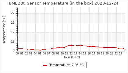 Experimental atmospheric pressure measurement with a simple sensor: BOSCH BME280The instrument is in the data collection box of the CR10X, the temperature and humidity do not reflect the real air conditions, because the box is in the sun and is not properly ventilated for these measurements.