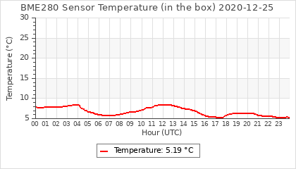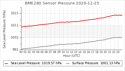 Experimental atmospheric pressure measurement with a simple sensor: BOSCH BME280The instrument is in the data collection box of the CR10X, the temperature and humidity do not reflect the real air conditions, because the box is in the sun and is not properly ventilated for these measurements.