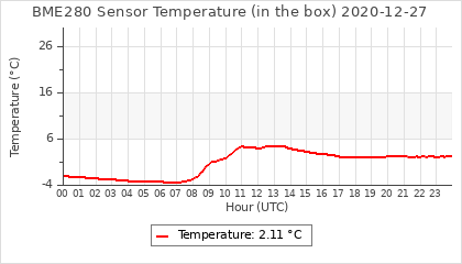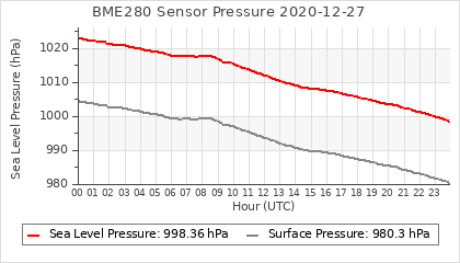 Experimental atmospheric pressure measurement with a simple sensor: BOSCH BME280The instrument is in the data collection box of the CR10X, the temperature and humidity do not reflect the real air conditions, because the box is in the sun and is not properly ventilated for these measurements.
