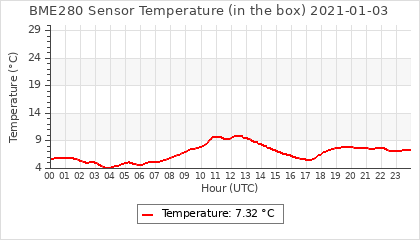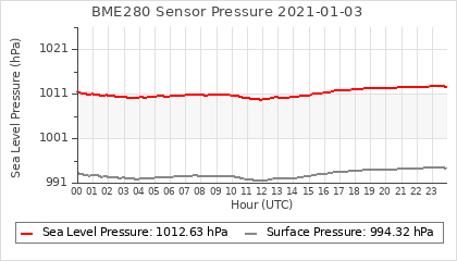 Experimental atmospheric pressure measurement with a simple sensor: BOSCH BME280The instrument is in the data collection box of the CR10X, the temperature and humidity do not reflect the real air conditions, because the box is in the sun and is not properly ventilated for these measurements.