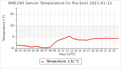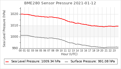 Experimental atmospheric pressure measurement with a simple sensor: BOSCH BME280The instrument is in the data collection box of the CR10X, the temperature and humidity do not reflect the real air conditions, because the box is in the sun and is not properly ventilated for these measurements.