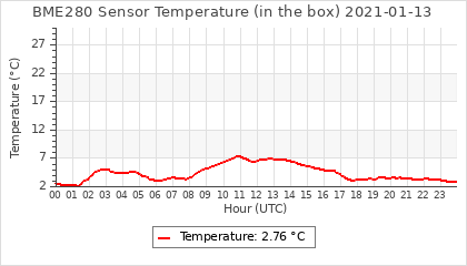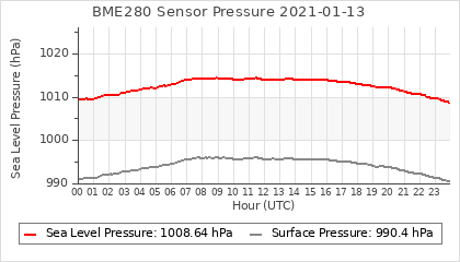 Experimental atmospheric pressure measurement with a simple sensor: BOSCH BME280The instrument is in the data collection box of the CR10X, the temperature and humidity do not reflect the real air conditions, because the box is in the sun and is not properly ventilated for these measurements.