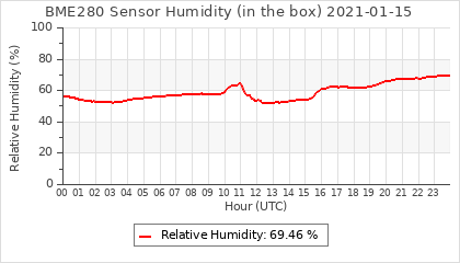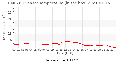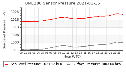 Experimental atmospheric pressure measurement with a simple sensor: BOSCH BME280The instrument is in the data collection box of the CR10X, the temperature and humidity do not reflect the real air conditions, because the box is in the sun and is not properly ventilated for these measurements.