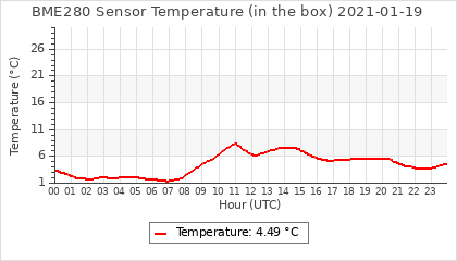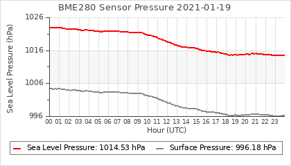 Experimental atmospheric pressure measurement with a simple sensor: BOSCH BME280The instrument is in the data collection box of the CR10X, the temperature and humidity do not reflect the real air conditions, because the box is in the sun and is not properly ventilated for these measurements.