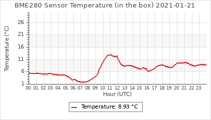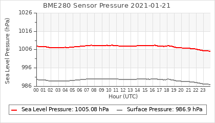 Experimental atmospheric pressure measurement with a simple sensor: BOSCH BME280The instrument is in the data collection box of the CR10X, the temperature and humidity do not reflect the real air conditions, because the box is in the sun and is not properly ventilated for these measurements.