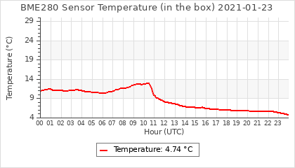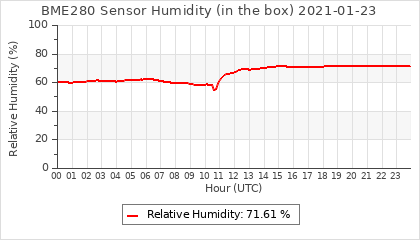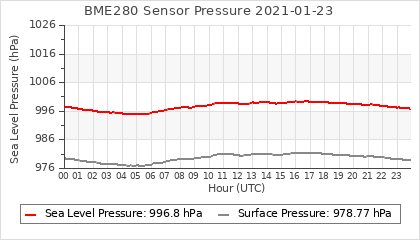 Experimental atmospheric pressure measurement with a simple sensor: BOSCH BME280The instrument is in the data collection box of the CR10X, the temperature and humidity do not reflect the real air conditions, because the box is in the sun and is not properly ventilated for these measurements.
