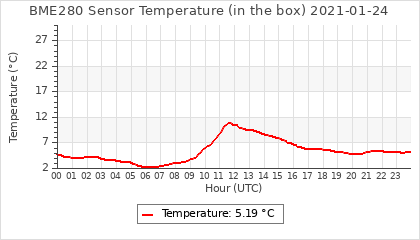 Experimental atmospheric pressure measurement with a simple sensor: BOSCH BME280The instrument is in the data collection box of the CR10X, the temperature and humidity do not reflect the real air conditions, because the box is in the sun and is not properly ventilated for these measurements.