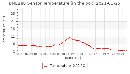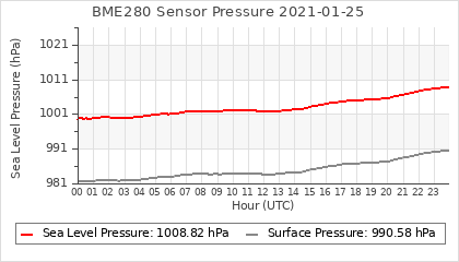 Experimental atmospheric pressure measurement with a simple sensor: BOSCH BME280The instrument is in the data collection box of the CR10X, the temperature and humidity do not reflect the real air conditions, because the box is in the sun and is not properly ventilated for these measurements.