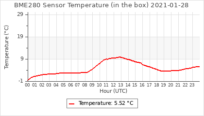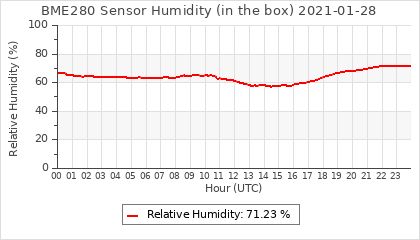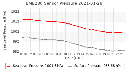 Experimental atmospheric pressure measurement with a simple sensor: BOSCH BME280The instrument is in the data collection box of the CR10X, the temperature and humidity do not reflect the real air conditions, because the box is in the sun and is not properly ventilated for these measurements.
