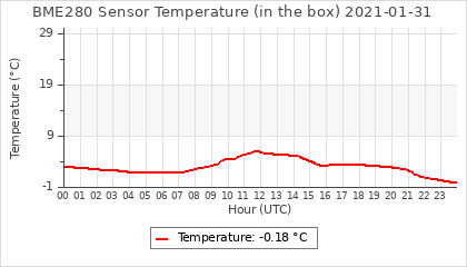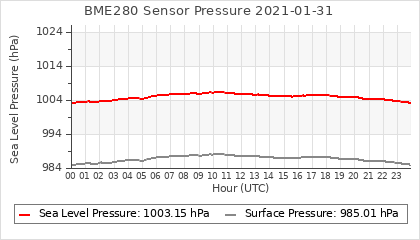 Experimental atmospheric pressure measurement with a simple sensor: BOSCH BME280The instrument is in the data collection box of the CR10X, the temperature and humidity do not reflect the real air conditions, because the box is in the sun and is not properly ventilated for these measurements.