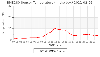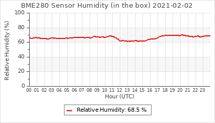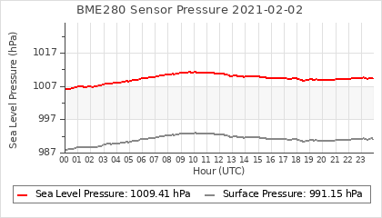 Experimental atmospheric pressure measurement with a simple sensor: BOSCH BME280The instrument is in the data collection box of the CR10X, the temperature and humidity do not reflect the real air conditions, because the box is in the sun and is not properly ventilated for these measurements.