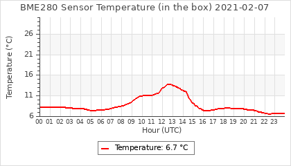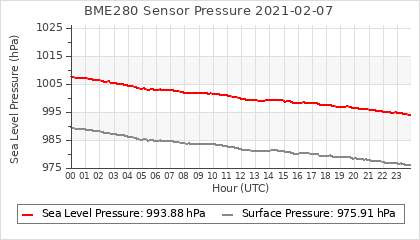 Experimental atmospheric pressure measurement with a simple sensor: BOSCH BME280The instrument is in the data collection box of the CR10X, the temperature and humidity do not reflect the real air conditions, because the box is in the sun and is not properly ventilated for these measurements.