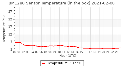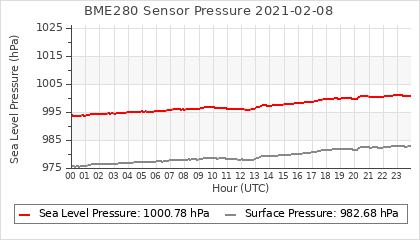 Experimental atmospheric pressure measurement with a simple sensor: BOSCH BME280The instrument is in the data collection box of the CR10X, the temperature and humidity do not reflect the real air conditions, because the box is in the sun and is not properly ventilated for these measurements.