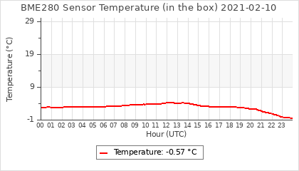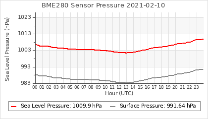 Experimental atmospheric pressure measurement with a simple sensor: BOSCH BME280The instrument is in the data collection box of the CR10X, the temperature and humidity do not reflect the real air conditions, because the box is in the sun and is not properly ventilated for these measurements.