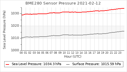 Experimental atmospheric pressure measurement with a simple sensor: BOSCH BME280The instrument is in the data collection box of the CR10X, the temperature and humidity do not reflect the real air conditions, because the box is in the sun and is not properly ventilated for these measurements.