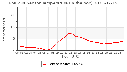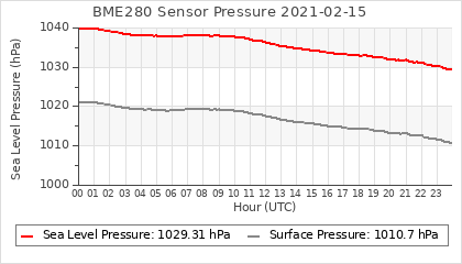Experimental atmospheric pressure measurement with a simple sensor: BOSCH BME280The instrument is in the data collection box of the CR10X, the temperature and humidity do not reflect the real air conditions, because the box is in the sun and is not properly ventilated for these measurements.