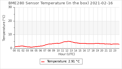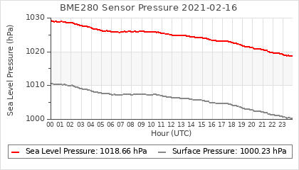 Experimental atmospheric pressure measurement with a simple sensor: BOSCH BME280The instrument is in the data collection box of the CR10X, the temperature and humidity do not reflect the real air conditions, because the box is in the sun and is not properly ventilated for these measurements.